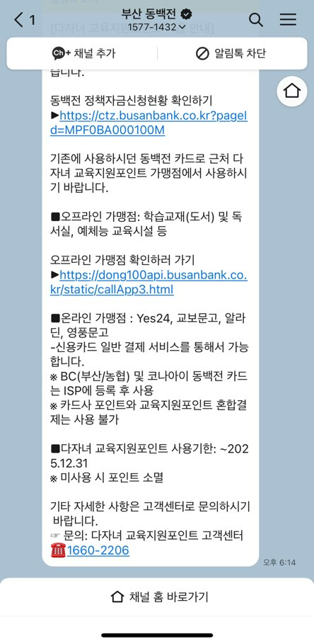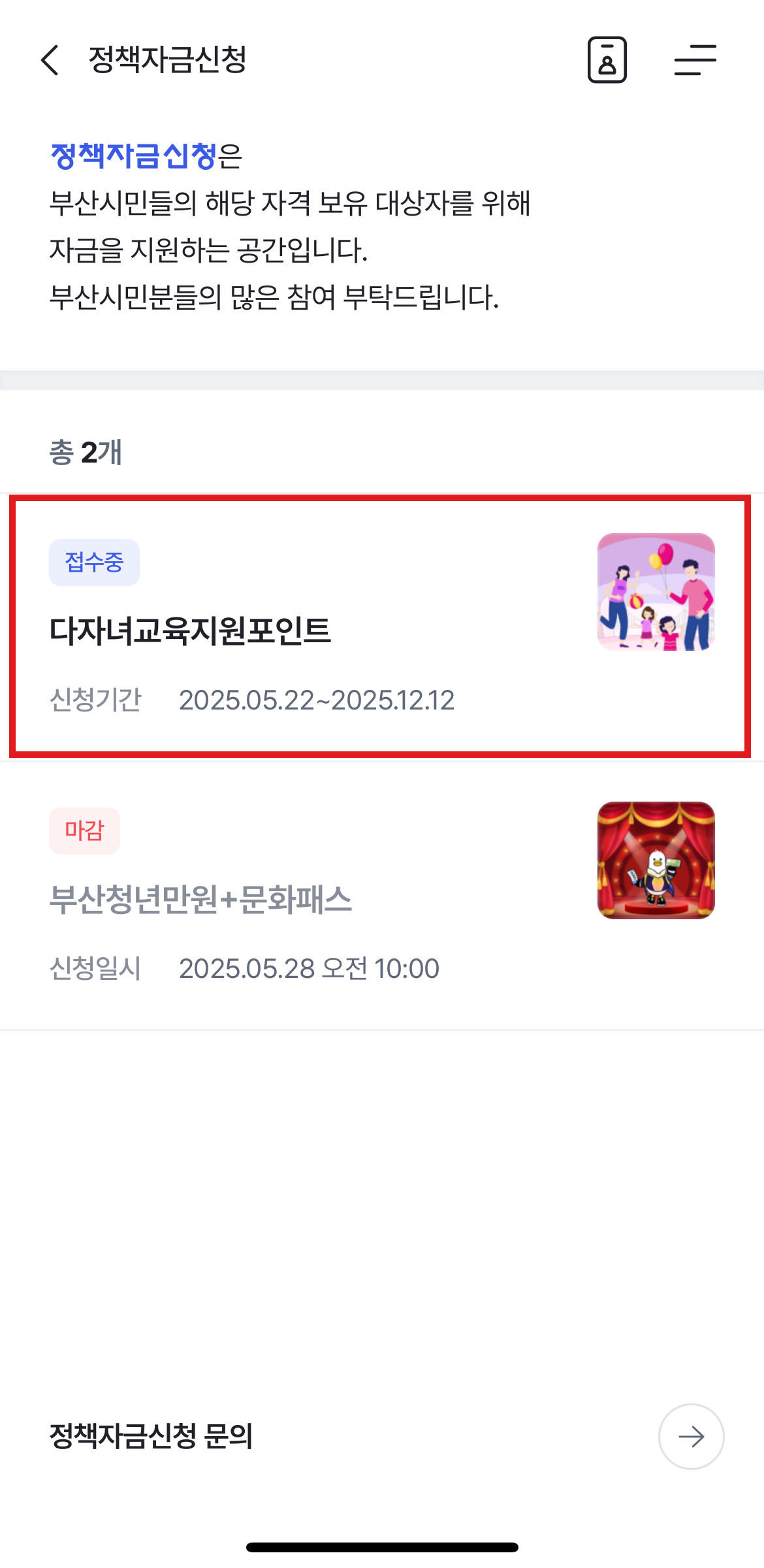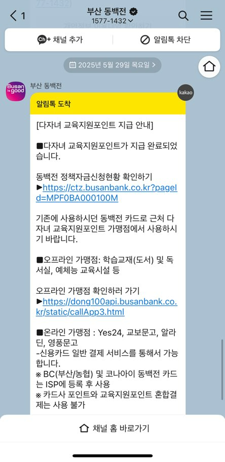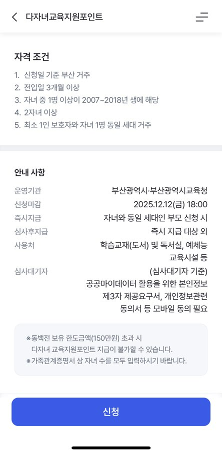 연 1회 교육지원포인트 지급(동백전 정책지원금)