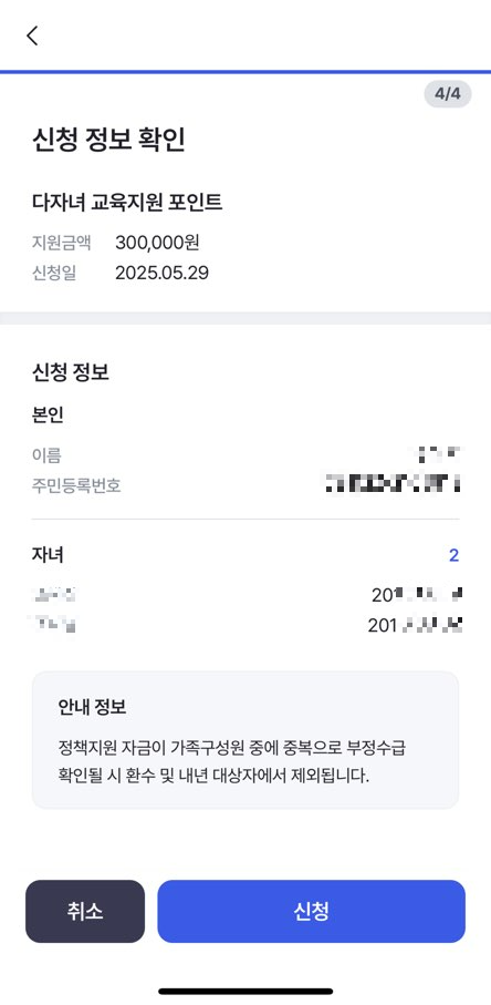- 카드사 포인트와 교육지원포인트 혼합결제는 사용 불가