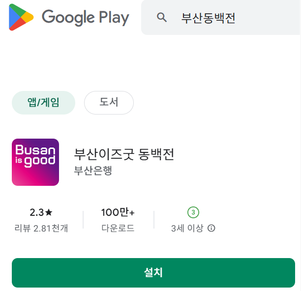 "부산 동백전" 을 검색하면 앱이 나옵니다.
