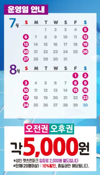 물놀이 입장료 : 오전권 오후권 5,000원